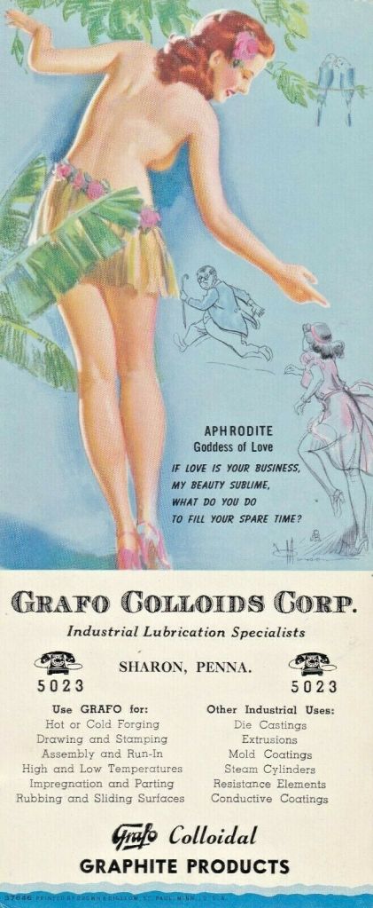 Aphrodite Posted byBlotto22May 30, 2025Posted inBlotter, Ink blotter, MunsonTags:Blotter, Ink blotter, K. O. Munson, Pin-up Pin-up by K. O. Munson, published by Brown & Bigelow, c. June 1948, #37646 Share this: Click to share on Reddit (Opens in new window) Reddit Click to share on X (Opens in new window) X Click to share on Tumblr (Opens in new window) Tumblr Click to share on Pinterest (Opens in new window) Pinterest Click to share on Facebook (Opens in new window) Facebook Click to email a link to a friend (Opens in new window) Email Like Loading... Related