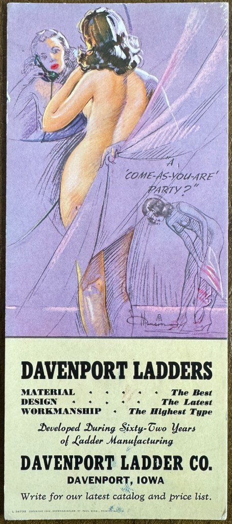 A ‘Come-As-You-Are’ Party? Posted byBlotto22December 31, 2025November 22, 2025Posted inBlotter, Munson, Ink blotterTags:Pin-up, Blotter, K. O. Munson, Ink blotter Pin-up by K. O. Munson. Published by Brown & Bigelow, c. 1945, #34732 Share this: Click to share on Reddit (Opens in new window) Reddit Click to share on X (Opens in new window) X Click to share on Tumblr (Opens in new window) Tumblr Click to share on Pinterest (Opens in new window) Pinterest Click to share on Facebook (Opens in new window) Facebook Click to email a link to a friend (Opens in new window) Email Like Loading... Related
