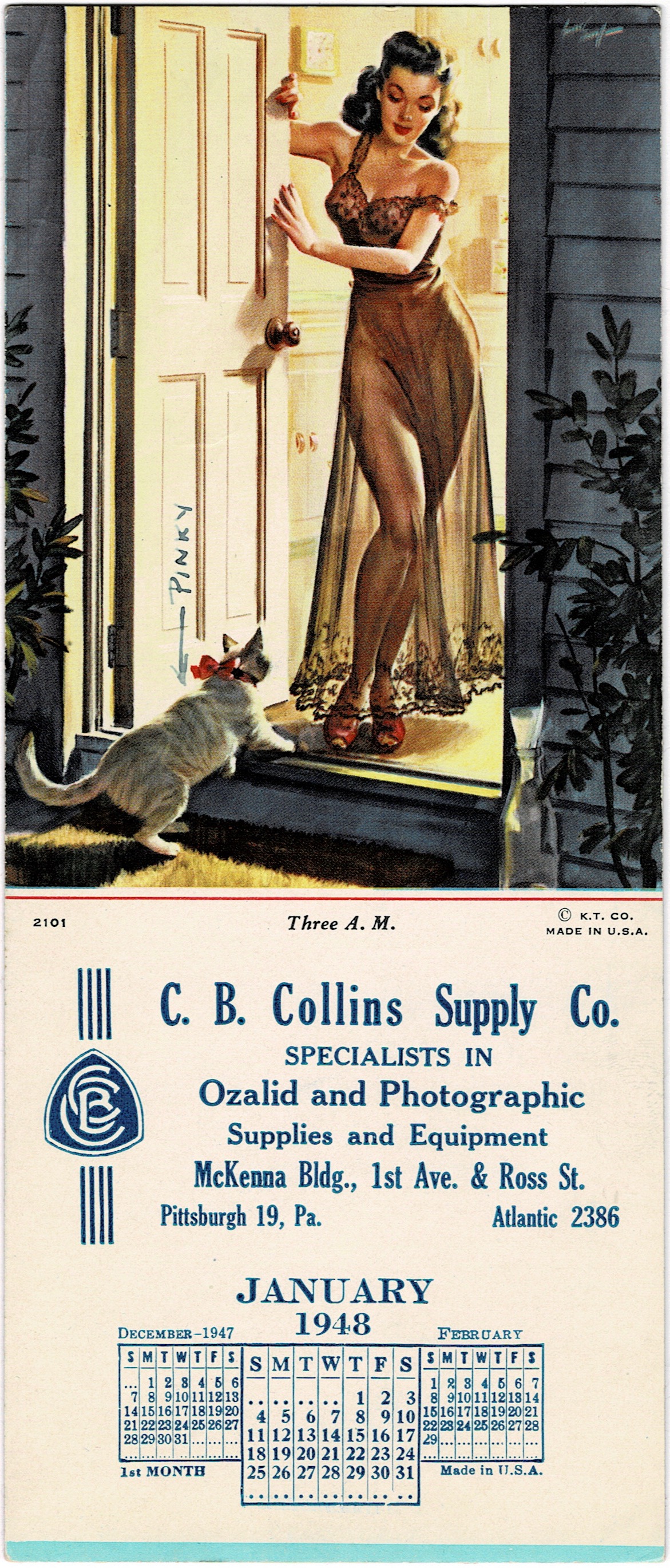 Pinup by Arthur Sarnoff for Kemper-Thomas Co., January 1948, 2101